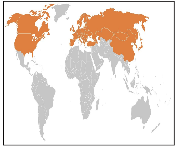 Figure 1: Global distribution of Lyme disease [?].