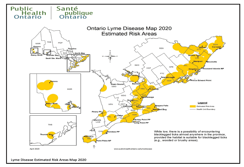 Figure 3: Location of Lyme Disease in Ontario in 2020.